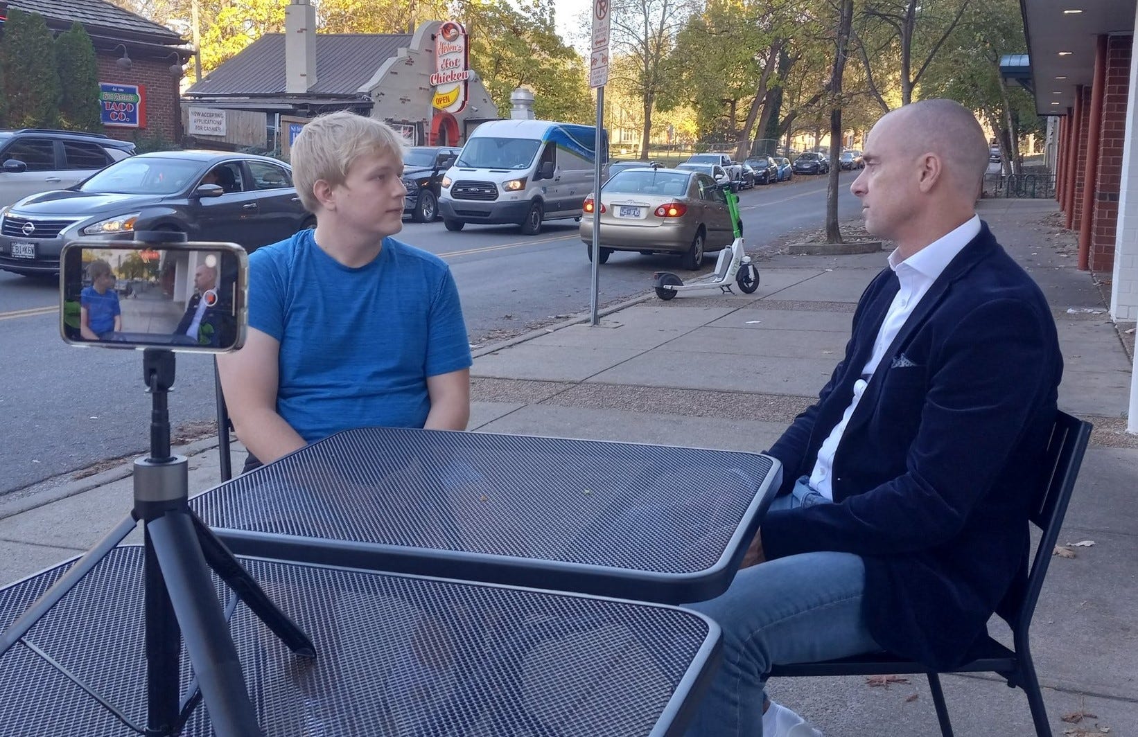 Calvin followed us from the campus of Vanderbilt University in Nashville, Tennessee, where a crowd of 40 to 50 young people had gathered around Chris like a magnet until campus security told us to leave.