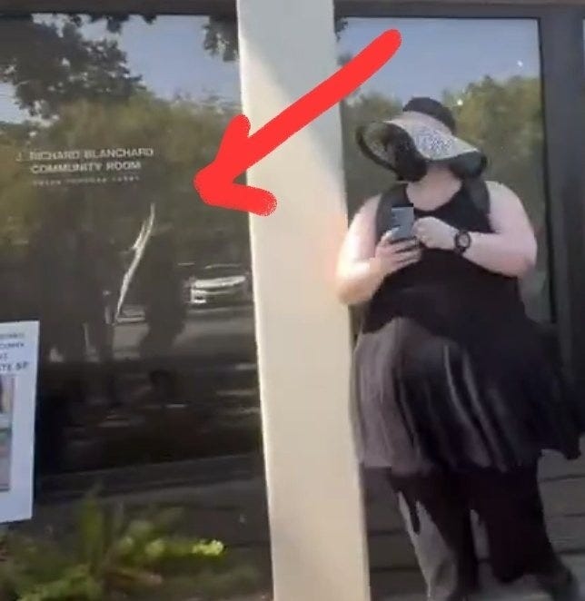 Clearly a leader, she was spoiling for a confrontation so that she could make a spurious complaint about violence. After all, trantifa have to justify their own terroristic violence, somehow.