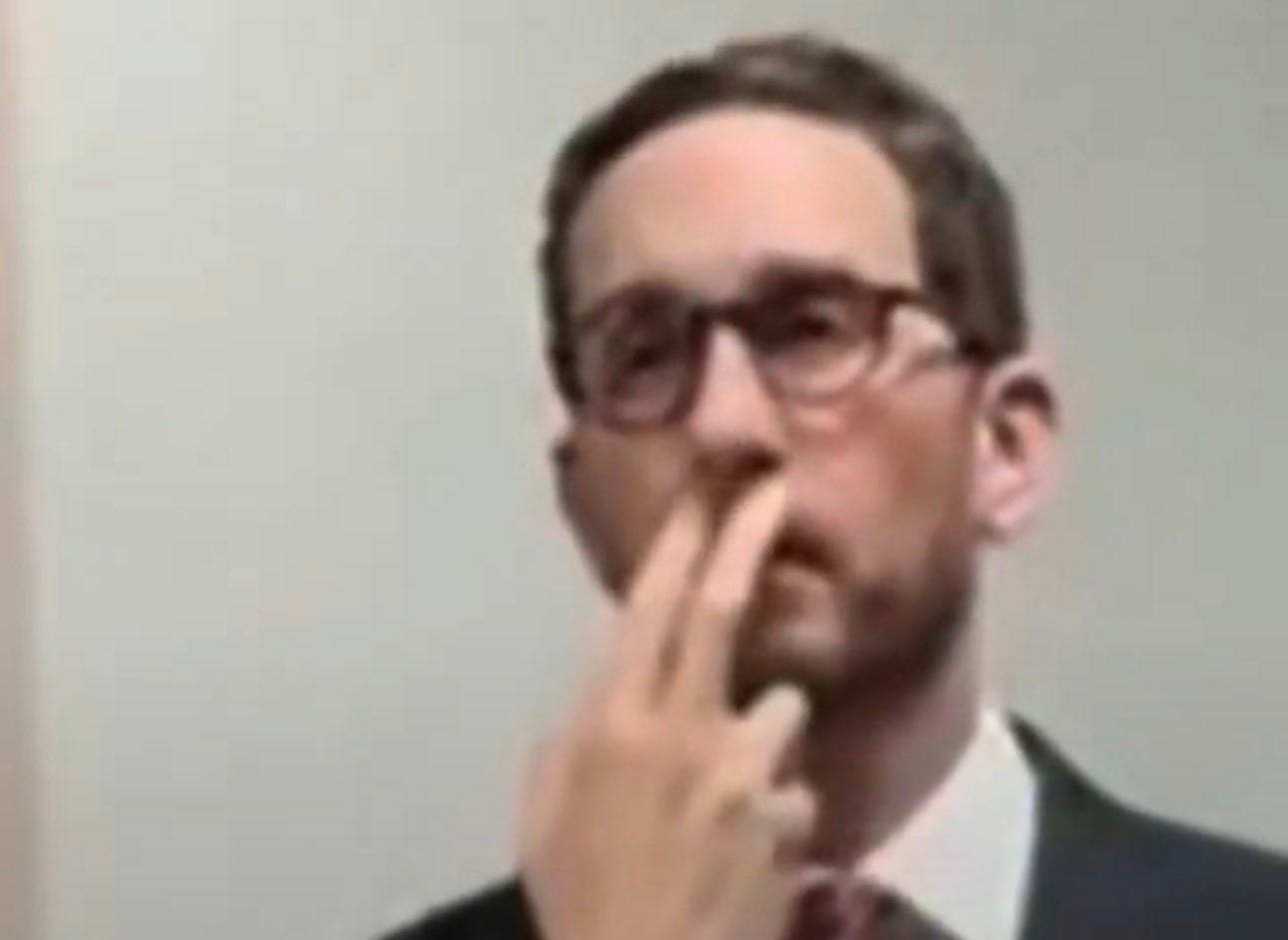 Here are frames of the video from the moment when Wiener was touching his mouth with his fingers. Beth Bourne took them. This looks like a nervous motion, it does not appear to be a natural face-scratch.