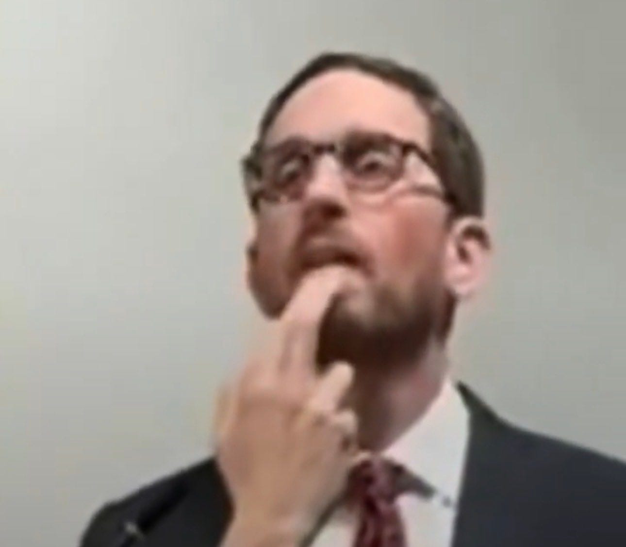 Here is a close-up of the moment when Scott Wiener had to deal with his discomfort. What is he doing with his fingers? Why did his collar suddenly not fit right?